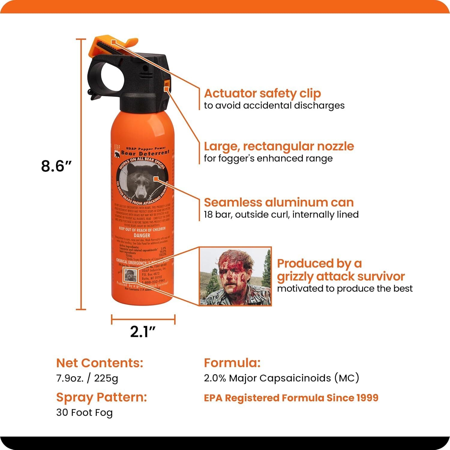 熊撃退スプレー 大型 9.2oz(ホルスター付)最大噴射距離約12m EPA登録モデル 熊・マウンテンライオン・コヨーテ対策 アウトドア用 正規輸入品 ベアースプレー&グリズガードホルスター – EPA認定 (9.2オンス) ホルスター付き 正規輸入品 (アメリカ森林警備隊採用品)熊よけスプレー UDAP UDAP